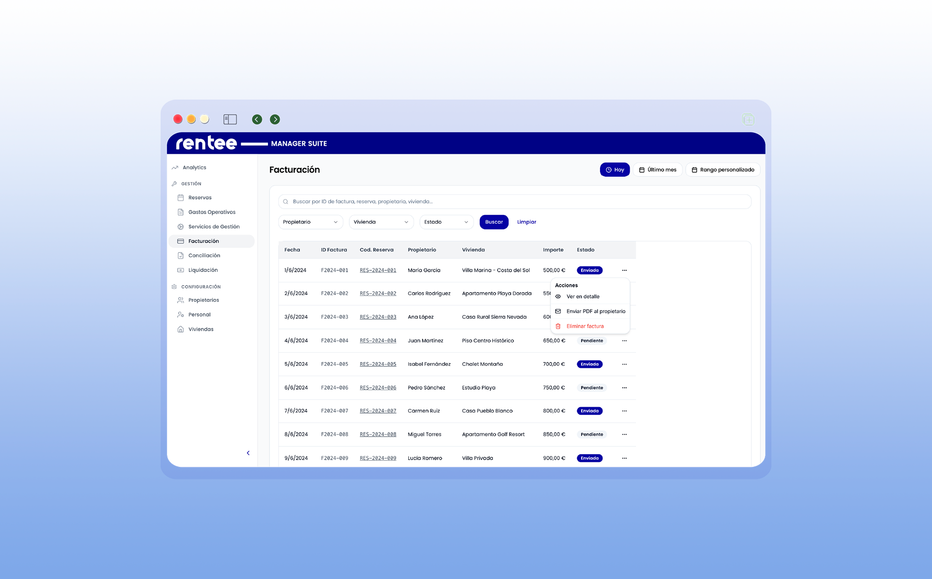 Por eso creamos Rentee Manager Suite: una solución a medida para que te centres en hacer crecer tu negocio, no en cuadrar cifras.