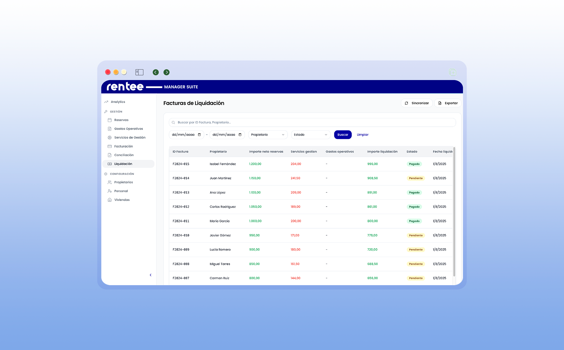 Concilia cobros, liquida a propietarios y paga a proveedores en un clic. Sin Excel ni errores. Usado por gestores entre 15 y 500 viviendas.